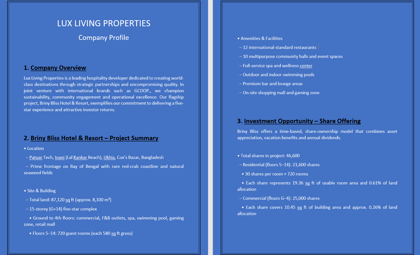 Lux Living Estate transformed my property investment experience completely. Highly recommend their services for real estate and tourism needs!
